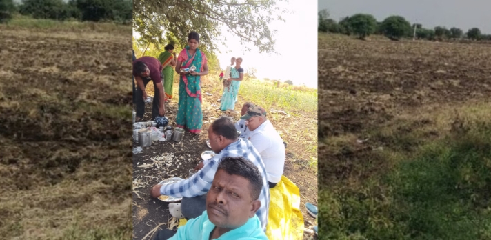 लातूर जिल्ह्यात दर्शवेळ अमावस्या निमित्त शेतात पत्रकार मित्रमंडळी पाहुण्यांनी भोजनाचा आस्वाद व आंबील पिऊन आनंद साजरा केला